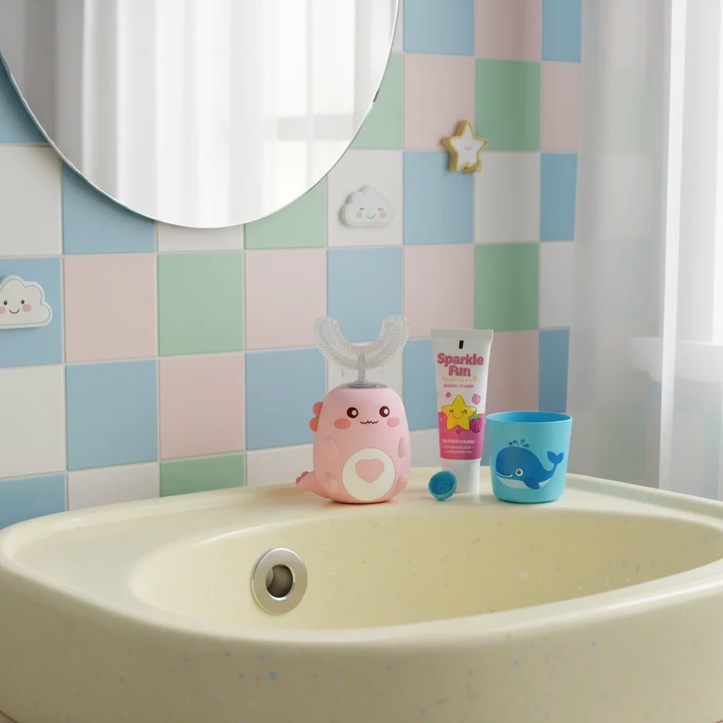 O design fofo, com visual divertido e cores alegres, transforma a escovação em um momento prazeroso. As crianças passam a encarar o cuidado com os dentes como algo leve e divertido, não como obrigação.